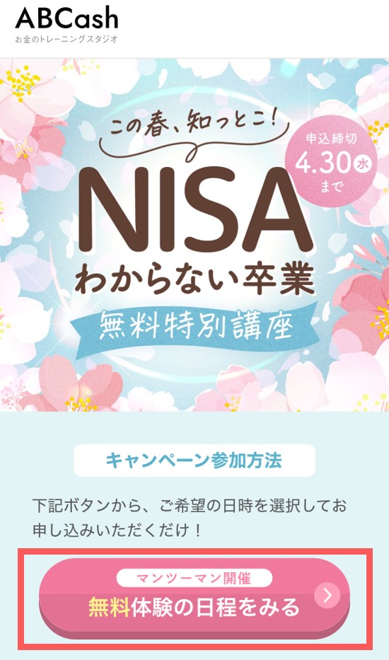 ここをタップして、「ABCashの無料体験の予約方法」を確認する!