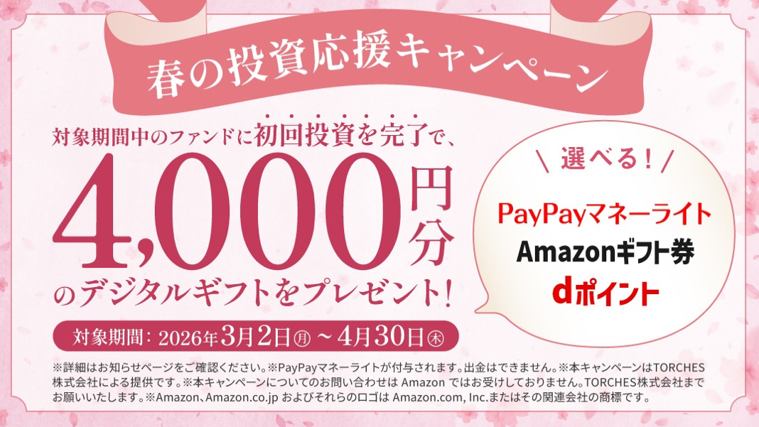 4月30日までに初回投資が完了したら、デジタルギフトカード4000円分がもらえる✨😳